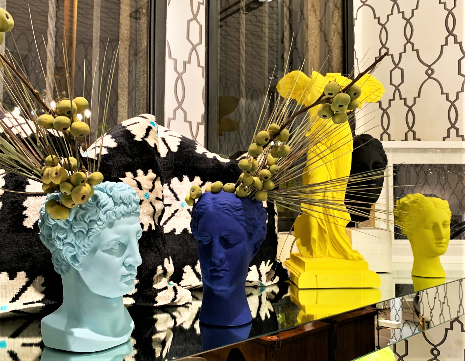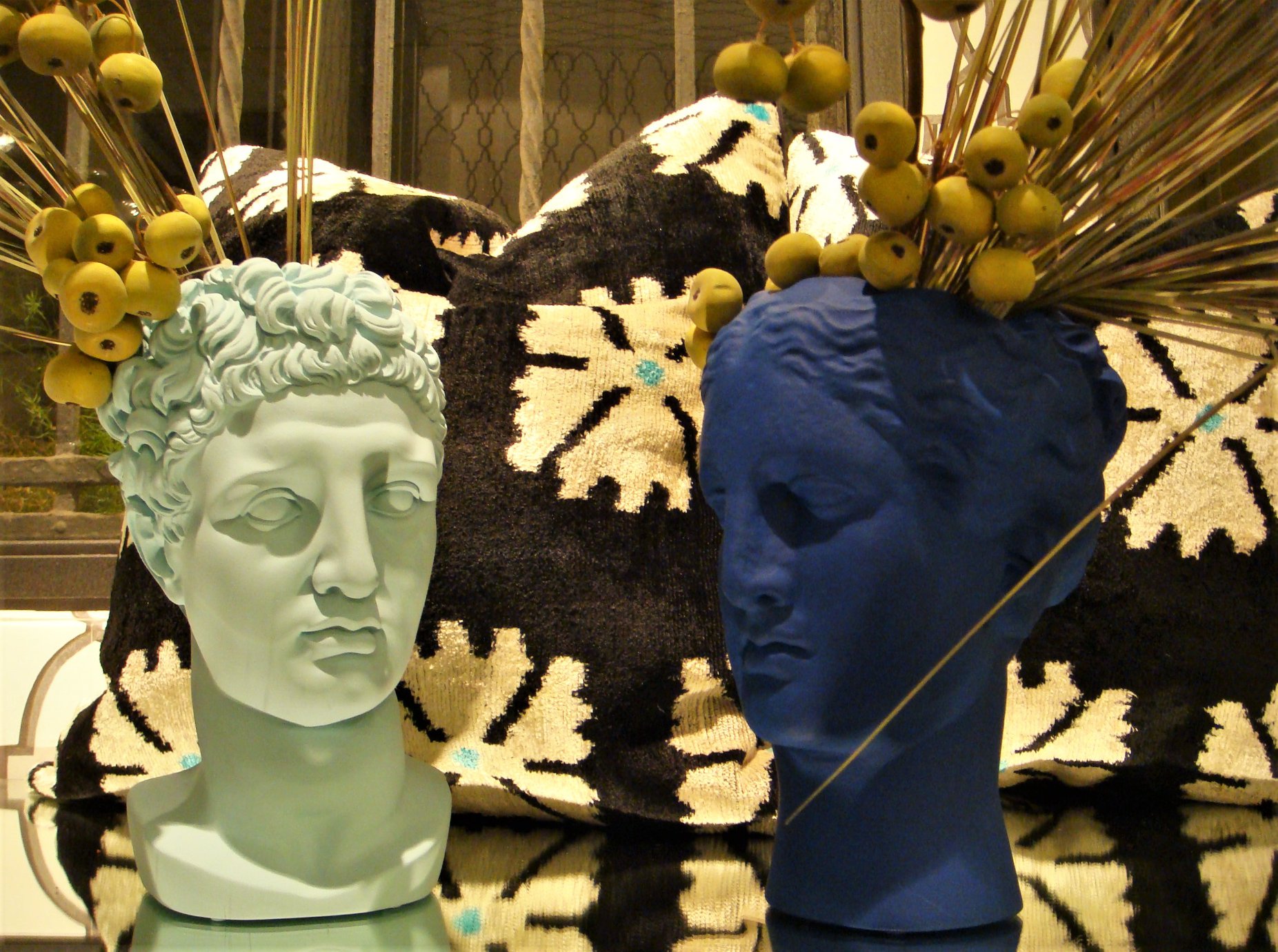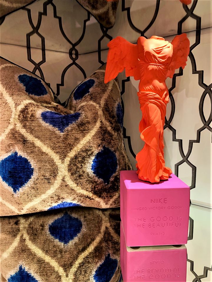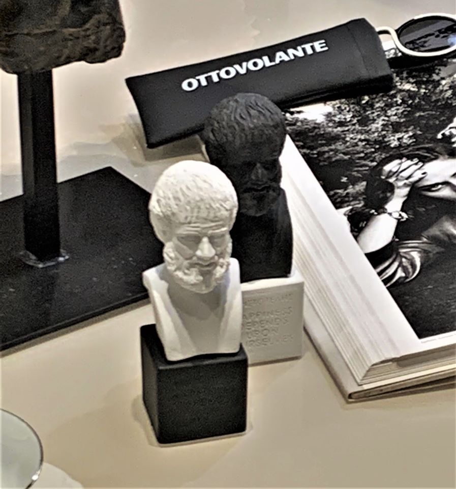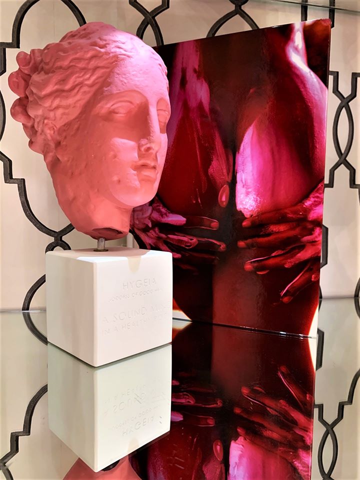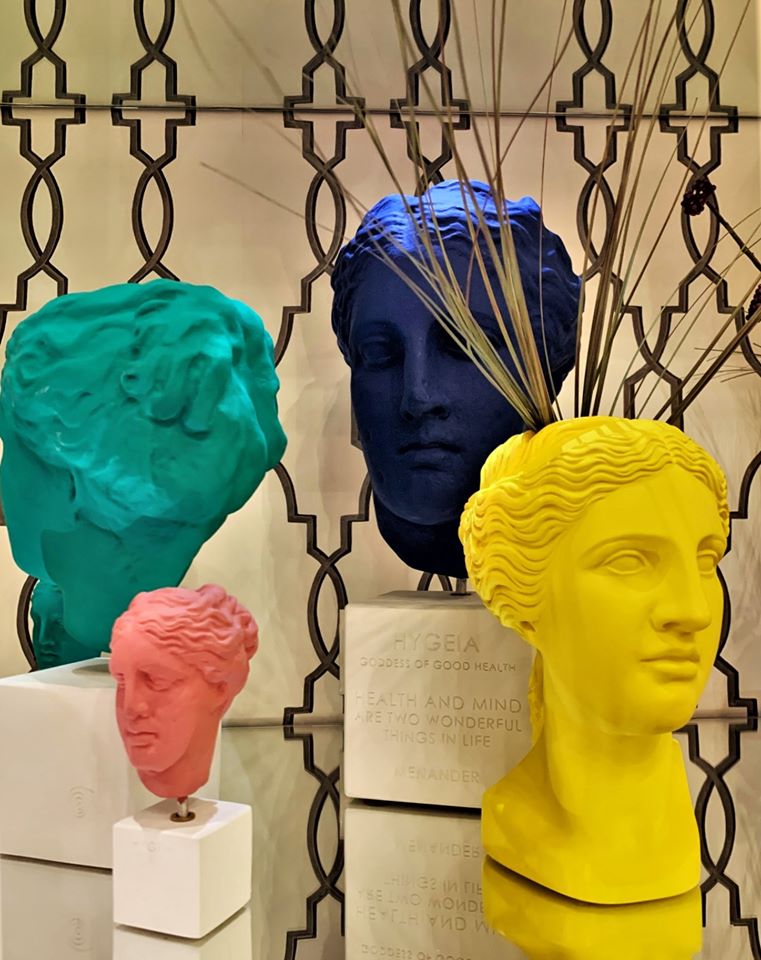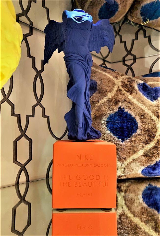 La vitalità cromatica dei suoi ormai noti vasi antropomorfi si accosta alla perfezione con alcuni simboli che impersonificano, a seconda delle richieste, la vittoria con la dea Nike, la salute, l’equilibrio e l’eccellenza del benessere fisico con Igea, la saggezza e la filosofia con Aristotele.