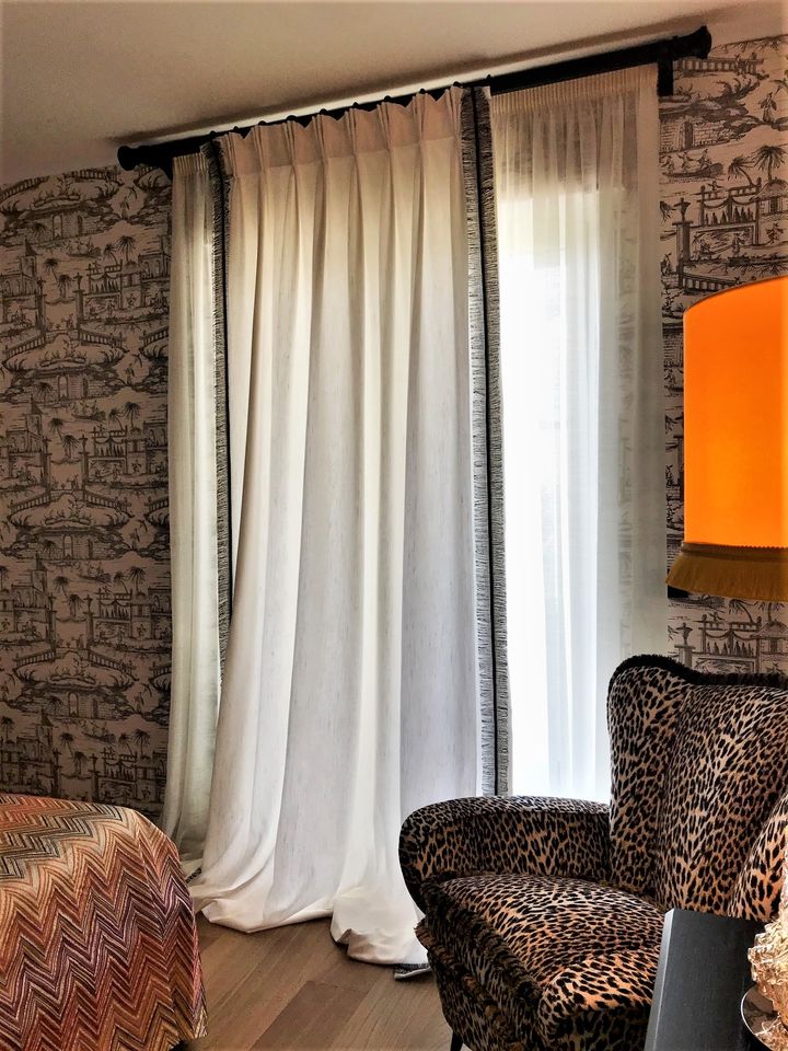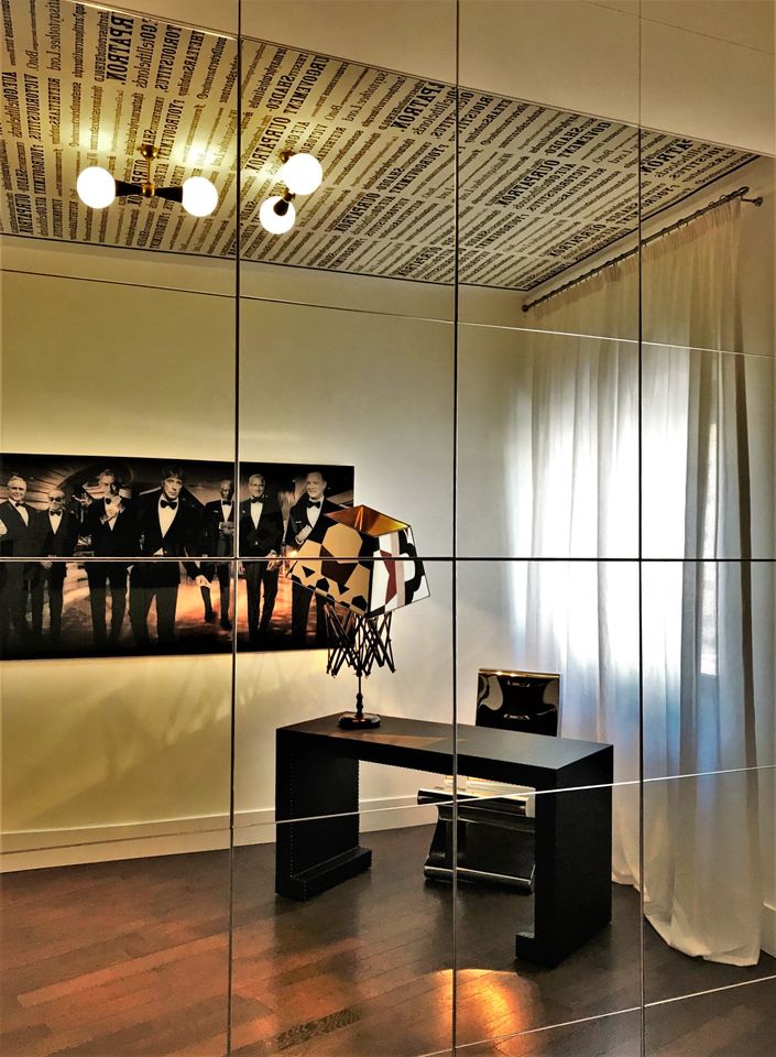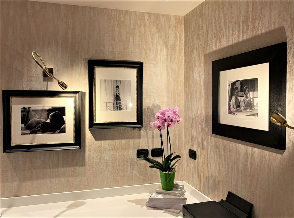 La nostra vasta offerta di scatti d’autore, incorniciati o su plex, permetteranno alle già prestigiose carte da parati di acquisire un glamour look, rendendo l’intero ambiente più confortevole e contemporaneo. Altri importanti dettagli possono essere ritrovati nelle lampade francesi, nei tappeti persiani annodati e dipinti a mano, nelle poltrone vintage reinventate, nei servizi per la tavola e negli eclettici complementi.